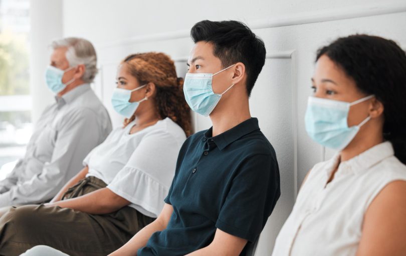 If you decide to help her, you can ask her to approach the receptionist for assistance. Or if you are willing to let her go first, as someone waiting in line, you only have the right to swap your place with her, while NOT holding everyone else in line back, by letting another patient come in between. If you are the not the next in line, there is only so much (or little) you can do in letting her have her turn earlier. However, it would still be practice of compassion and generosity. Letting the merely impatient wait appropriately to cultivate patience is also an act of compassion and generosity.