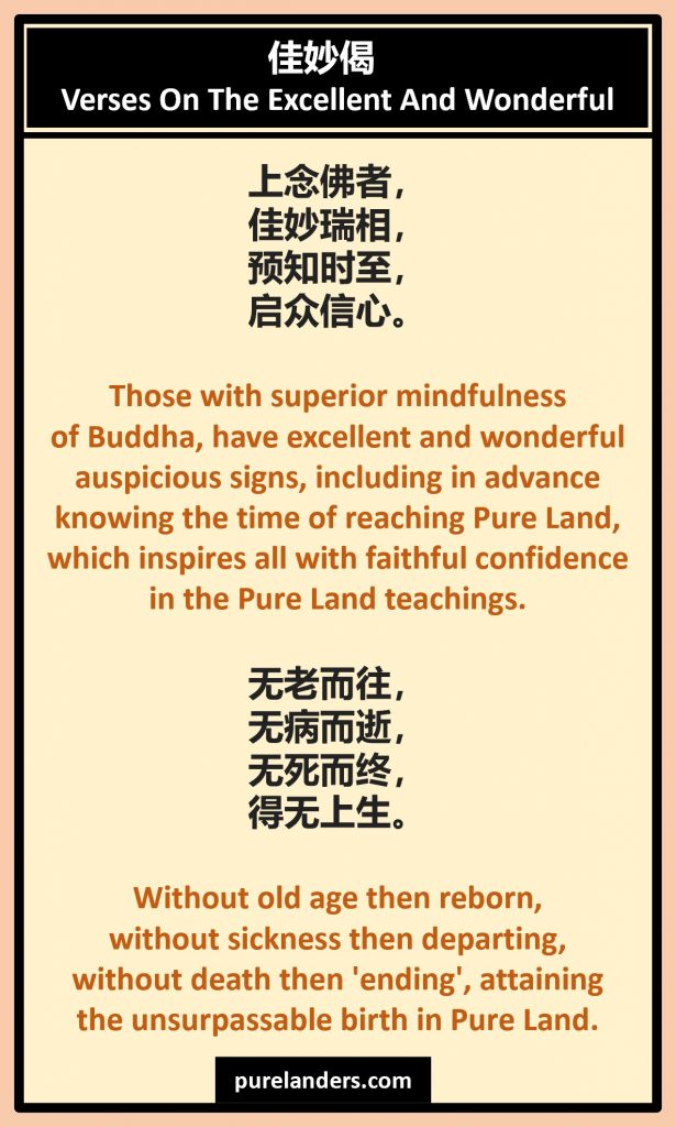 Without old age then reborn, without sickness then departing, without death then ‘ending’, attaining the unsurpassable birth in Pure Land.