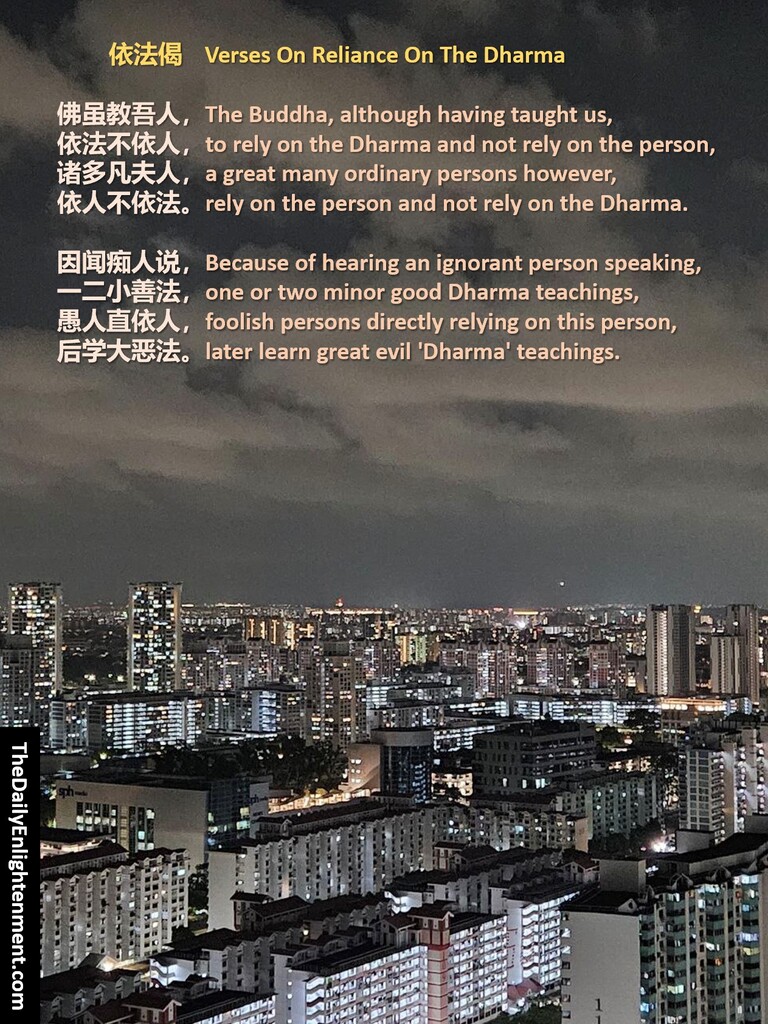 The Buddha, although having taught us, to rely on the Dharma and not rely on the person, a great many ordinary persons however, rely on the person and not rely on the Dharma.