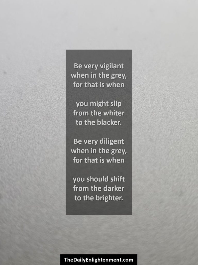 ThoughtsBe Vigilant And Diligent7 Mar 2026by tdeditorsAdd Comment FreepikBe very vigilantwhen in the grey,for that is whenyou might slipfrom the whiterto the blacker.Be very diligentwhen in the grey,for that is whenyou should shiftfrom the darkerto the brighter.